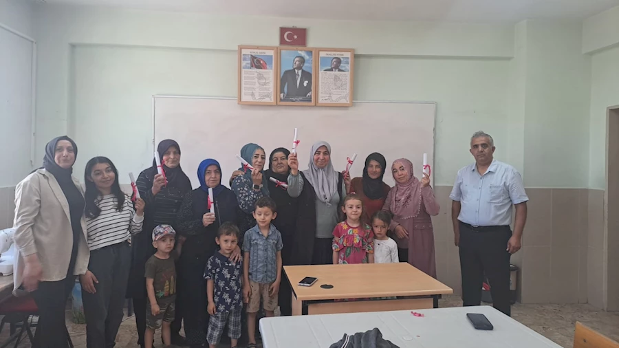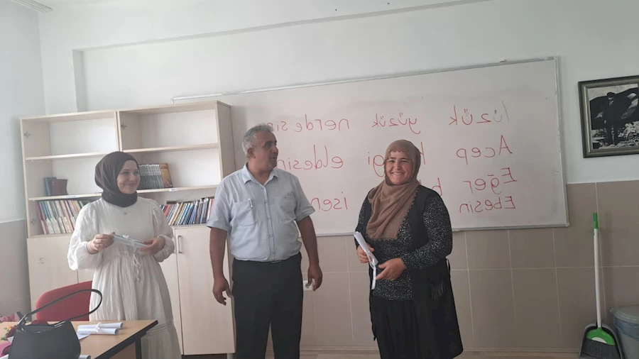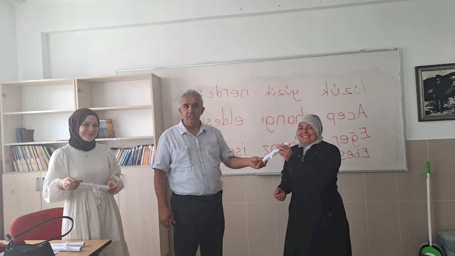 Diğer bir kursumuz olan okuma yazma kursunda ise kadın kursiyerlerimiz öğretmenimiz sayesinde birinci ve ikinci kademe okuma yazma kurslarına devam ederek sertifikalarını aldılar.
