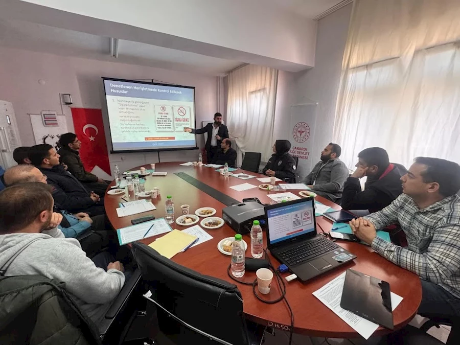 Eğitim programında, ilgili mevzuat çerçevesinde tütün ürünlerinin kullanımına yönelik yasaklar ve denetim süreçleri detaylı şekilde ele alındı. Kanuna göre, kamu hizmet binalarının kapalı alanlarında, koridorları da dahil olmak üzere eğitim, sağlık, üretim, ticaret, sosyal, kültürel, spor ve eğlence gibi alanlarda tütün ürünlerinin tüketilmesi yasak. Özel hukuk kişilerine ait, ancak birden fazla kişinin girebileceği kapalı alanlarda da tütün kullanımı yasak kapsamında bulunuyor. Sadece ikamete mahsus konut alanları bu düzenlemenin dışında tutuluyor.