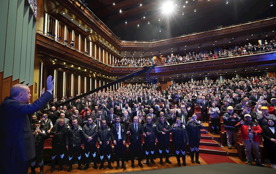 Cumhurbaşkanı Erdoğan, bir yandan ülkemizin büyüme ve kalkınma sürecine hız verirken diğer yandan adil ve rekabetçi bir düzenin oluşmasını sağladıklarını belirterek, "Bölgesinde ve dünyada sözü geçen demokrasi ve kalkınma hamleleriyle küresel ölçekte temayüz eden bir ülkeyi milletimizle sırt sırta vererek adeta yeni baştan inşa ettik. Üretim ve istihdamı ekonomi ve maliye politikamızın merkezine yerleştirmek bu suretle büyüme ve kalkınma atılımlarımızı sürdürülebilir hale getirdik. Son dönemde bilhassa istihdam ve nitelikli iş gücü alanında devreye aldığımız programlarla başarı hanemize yepyeni kazanımlar ekledik" dedi.