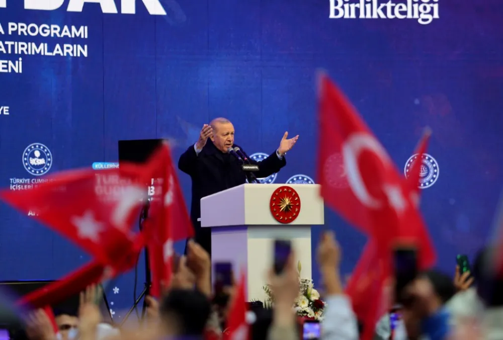 "Depremin yol açtığı kayıp ve zararların telafisi için toplam 3,6 trilyon lira yani 90 milyar dolar civarında kaynak kullandık. Şehirlerimizin depreme dirençli hale getirilmesi için 2026 bütçesinde 653 milyar lira ödenek ayırdık. Afet bölgesindeki evlatlarımızın eğitimi, üzerinde durduğumuz konuların başında yer alıyor. Bölgedeki 119 bin 200 dersliğin 9 bin 800’ü kullanılamaz duruma gelmişti. 14 bin 310 derslik inşa ettik. 2 bin 965 dersliğin güçlendirme çalışmalarını bitirdik. Toplam derslik sayımızı 126 bin 675’e çıkardık. Deprem illerimizdeki gençlerin barınma ihtiyaçlarını karşılamak üzere 14 bin 400 yatak kapasiteli 15 adet yeni yurt projesi yürütüyoruz. Şuraya özellikle dikkatinizi çekiyorum, sağlık altyapısında meydana gelen hasarın telafisi için 123 milyar liralık yatırım gerçekleştirdik. Toplamda 5 bin 864 yatak kapasiteli 36 devlet hastanesini bitirdik. İbadethanelerimizi ihya ettik. Kütüphanelerimizi ayağa kaldırdık. Kültür varlıklarımızı, tarihi yapılarımızı ve müzelerimizi onardık. Adalet ve emniyet hizmetlerinin hiçbir aksaklığa mahal verilmeden devam ettirilmesi için gerekli tüm adımları attık. Deprem bölgemizde 203 bin metrekare büyüklüğünde 3 adalet binası ve 1 ceza infaz kurumu inşa ederek hizmete açtık. Toplam 224 bin metrekarelik 9 adalet binası ile 1 ceza infaz kurumunun yapımını da yakında tamamlıyoruz. 60 emniyet binamızın inşa ve onarımı ile jandarmamıza ait 29 hizmet binasının yapımını ve 143 binanın güçlendirme işlemlerini tamamladık. 10 adet hizmet binamızın yapımı ise sürüyor. Depremden etkilenen 11 ilimizdeki huzurevleri, çocukevleri ve sosyal hizmet merkezleri gibi hizmet binalarımızı da yeniden ihya ettik. Esnafımızın, sanayicimizin, çiftçimizin, üreticimizin hep yanında olduk. Mücbir sebep hallerini 2025 yılının sonuna kadar uzattık. Prim borçlarını erteledik ve bu borçların 31 Mart 2026’ya kadar yapılandırılmasının önünü açtık. Hizmetlerin aksamadan yürütülmesi için yerel yönetimlere ciddi miktarda nakdi yardımda bulunduk. Böylelikle yol, su, elektrik gibi temel ihtiyaçlarla birlikte eğitim ve sağlık gibi ana hizmetlerin de karşılandığı yaşam alanları oluşturduk. İçme suyu ve atık su altyapısının hızla tesis edilmesi amacıyla 11 deprem ilimizde 8 bin kilometre uzunluğunda boru hattı inşa ediyoruz. Su ve sulama alanında devam eden yatırımlarımız bittiğinde 110 milyar liralık bir rakamı bölgemiz için kullanmış olacağız. Ulaşım yatırımları için harcadığımız tutar 80 milyar lirayı buluyor. Yeni yerleşim alanlarının ulaşımı için 294 kilometrelik bağlantı ve imar yolu yaptık. Enerji ve madencilik sektörlerindeki zararları önemli ölçüde telafi ettik. Depremde zarar gören demiryolu hatlarının onarımını gerçekleştirdik. Hatay ve Malatya havalimanlarını onararak sivil uçuşlara açtık. Her iki havalimanımızda da inşallah yıl sonuna kadar tam kapasite hizmet vermeye başlayacak. Madenli Yat Limanı ve Su Sporları Merkezi’nin yapımını da bu sene bitireceğiz. Deprem bölgemizdeki haberleşme altyapımızı da hızla yenileyerek daha güçlü bir seviyeye taşıdık. 6 Şubat öncesinde 58 bin kilometre olan fiber uzunluğumuz bugün 80 bin kilometreye ulaştı. Yaklaşık 5 bin 300 adet kalıcı baz istasyonu kurduk. Sanayi yatırımlarımızı da süratle hayata geçiriyoruz. Daha burada saymaya kalksak saatlerimizi alacak nice yatırımı, desteği depremden etkilenen şehirlerimizin emrine verdik."