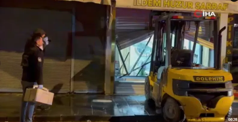 Öte yandan, hırsızın forkliftle kuyumcu dükkanının kepengini kırdığı anlar kameralara yansıdı. Şahsın hırsızlık sırasında bere ve cerrahi maskeyle yüzünü gizlediği anlar da saniye saniye kaydedildi.