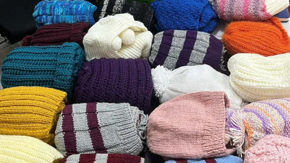 Mahalle muhtarı Cuma Zırh öncülüğünde yürütülen "Çocuklar Üşümesin" projesi kapsamında, el emeğiyle örülen atkı ve bereler mahalledeki çocuklara ulaştırıldı.