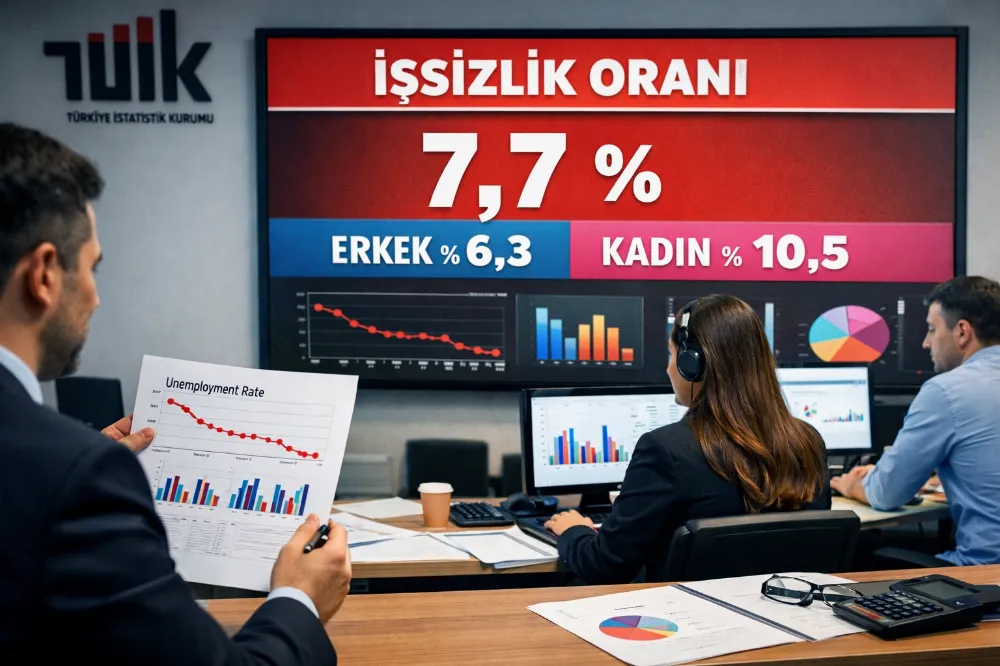 Türkiye İstatistik Kurumu (TÜİK), Aralık ayı İşgücü İstatistikleri’ni açıkladı. Hanehalkı İşgücü Araştırması sonuçlarına göre; 15 ve daha yukarı yaştaki kişilerde işsiz sayısı 2025 yılı Aralık ayında bir önceki aya göre 286 bin kişi azalarak 2 milyon 736 bin kişi oldu. İşsizlik oranı ise 0,8 puan azalarak yüzde 7,7 seviyesinde gerçekleşti. İşsizlik oranı erkeklerde yüzde 6,3 iken kadınlarda yüzde 10,5 olarak tahmin edildi.
