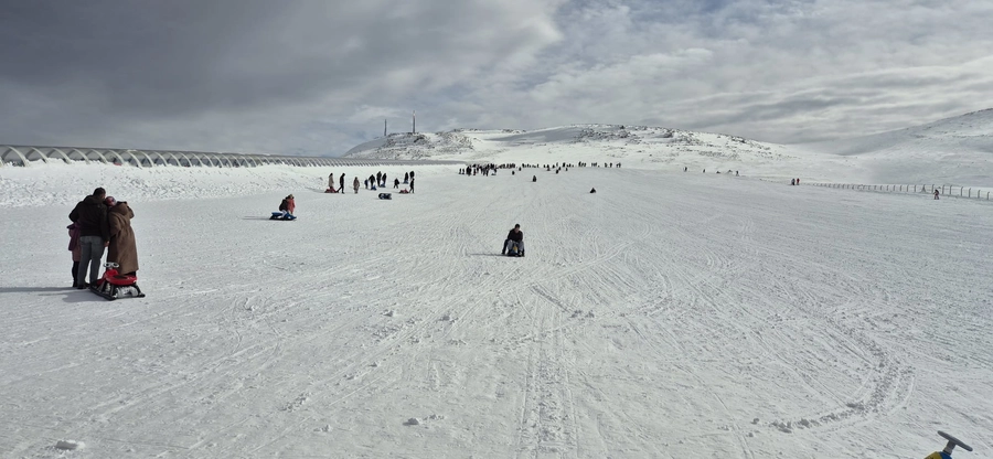 Hafta sonu boyunca vatandaşlar kızak, snowboard ve kayak takımlarıyla pistlerde kayarak keyifli vakit geçirdi. Aileler ve gençler, karın tadını çıkarırken kayak merkezinde renkli görüntüler oluştu.