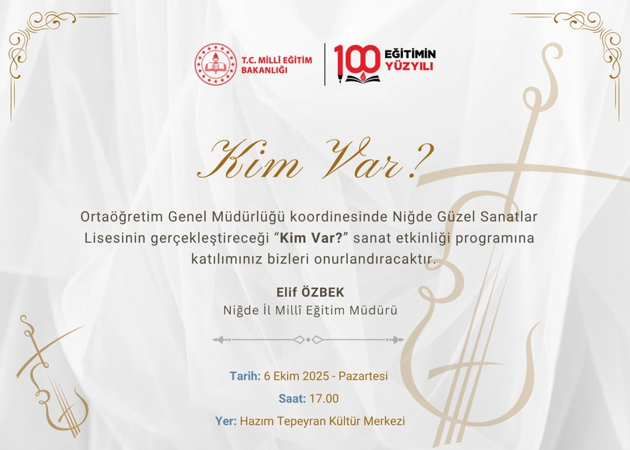 Milli Eğitim Bakanlığı Ortaöğretim Genel Müdürlüğü öncülüğünde ve Niğde İl Milli Eğitim Müdürlüğü koordinesinde yürütülen “Kim Var?” sanat etkinliği, Türkiye Yüzyılı Maarif Modeli’nin estetik duyarlılık, kültürel birikim ve değer temelli eğitim anlayışını destekleyen önemli bir proje olarak dikkat çekiyor.