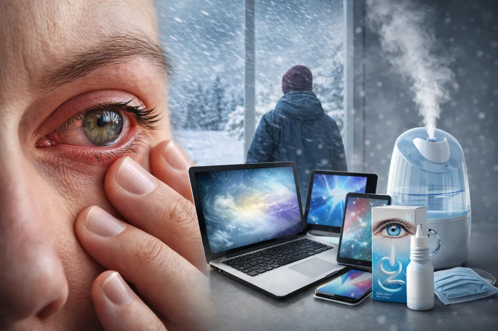Kış aylarının bir getirisi olan soğuk hava, rüzgar ve ısıtıcıların kullanıldığı kapalı ortamlarda daha fazla vakit geçirilmesi kimi zaman göz sağlığını olumsuz etkileyebiliyor. Özellikle soğuk ve rüzgarlı havalarda göz yüzeyinin nem dengesi bozuluyor, bunun sonucunda da göz kuruluğu şikayetleri oraya çıkıyor. Göz kuruluğu en sık gözlerde yanma, batma, kızarıklık, kum kaçmış hissi ve zaman zaman bulanık görme gibi belirtilerle kendini gösteriyor.