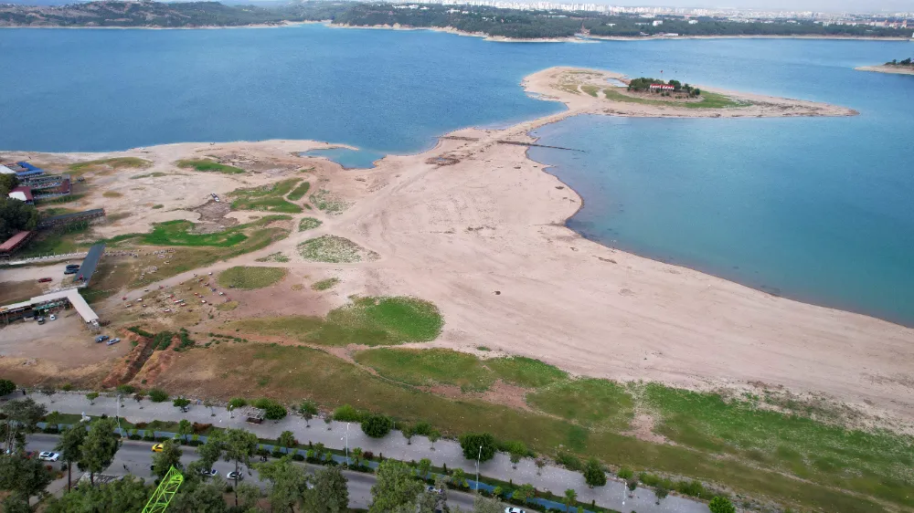 Seyhan Baraj Gölü'nde kuraklık sonrası gölün ortasındaki Sevgi Adası'na bağlantı sağlayan yol da ortaya çıktı.