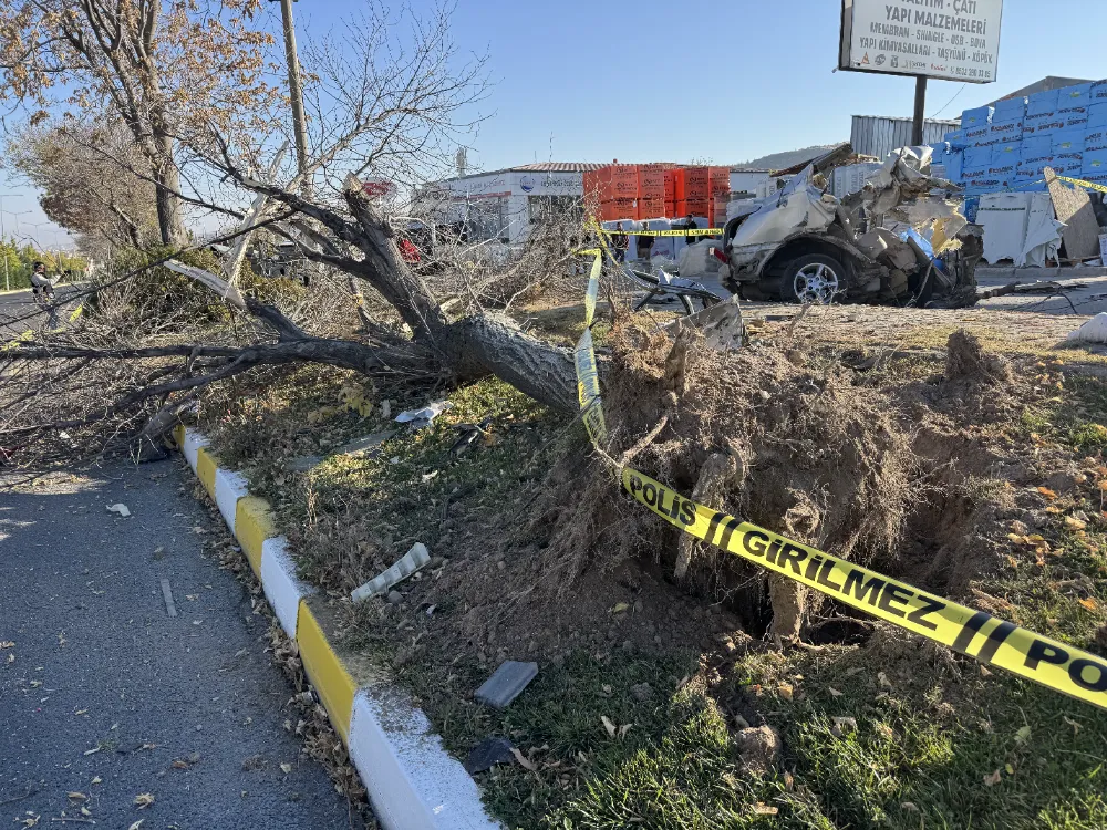 Öte yandan, kaza anı çevredeki bir iş yerinin güvenlik kamerasına saniye saniye yansıdı. Görüntülerde, aracın kontrolünü kaybederek yol kenarındaki ağaca çarpması ve çarpmanın etkisiyle ikiye bölünmesi yer alıyor.