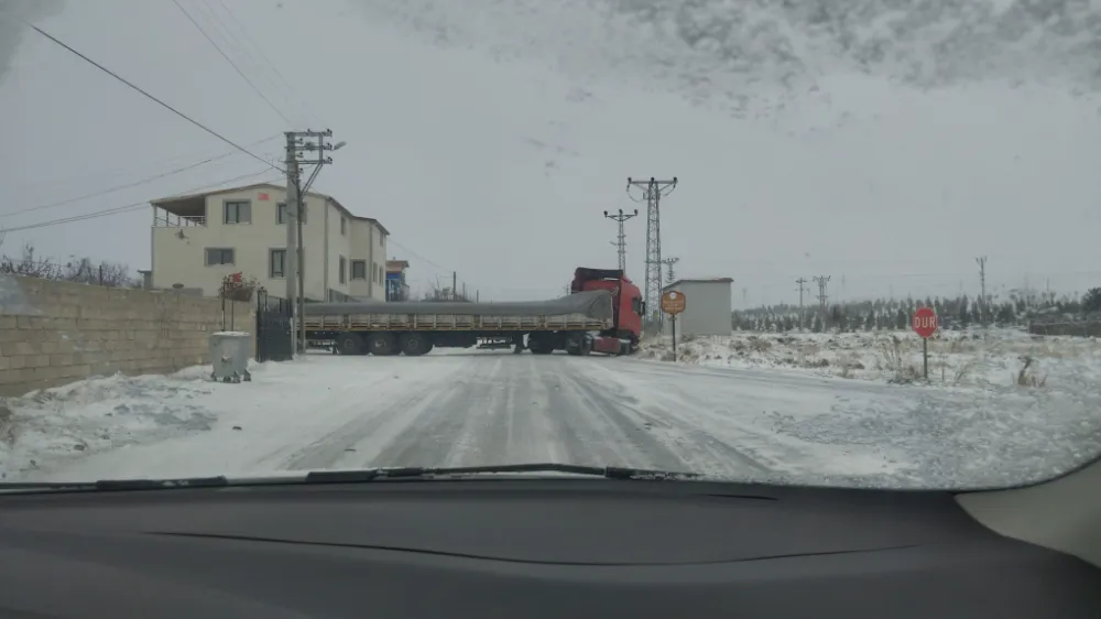 Niğde-Çiftlik yolunda, Yeşilburç Köyü girişinde buzlanma nedeniyle bir tır makas atarak yolu kapattı. Trafik akışı dururken, ekipler yolu açmak için çalışmalarını sürdürüyor.