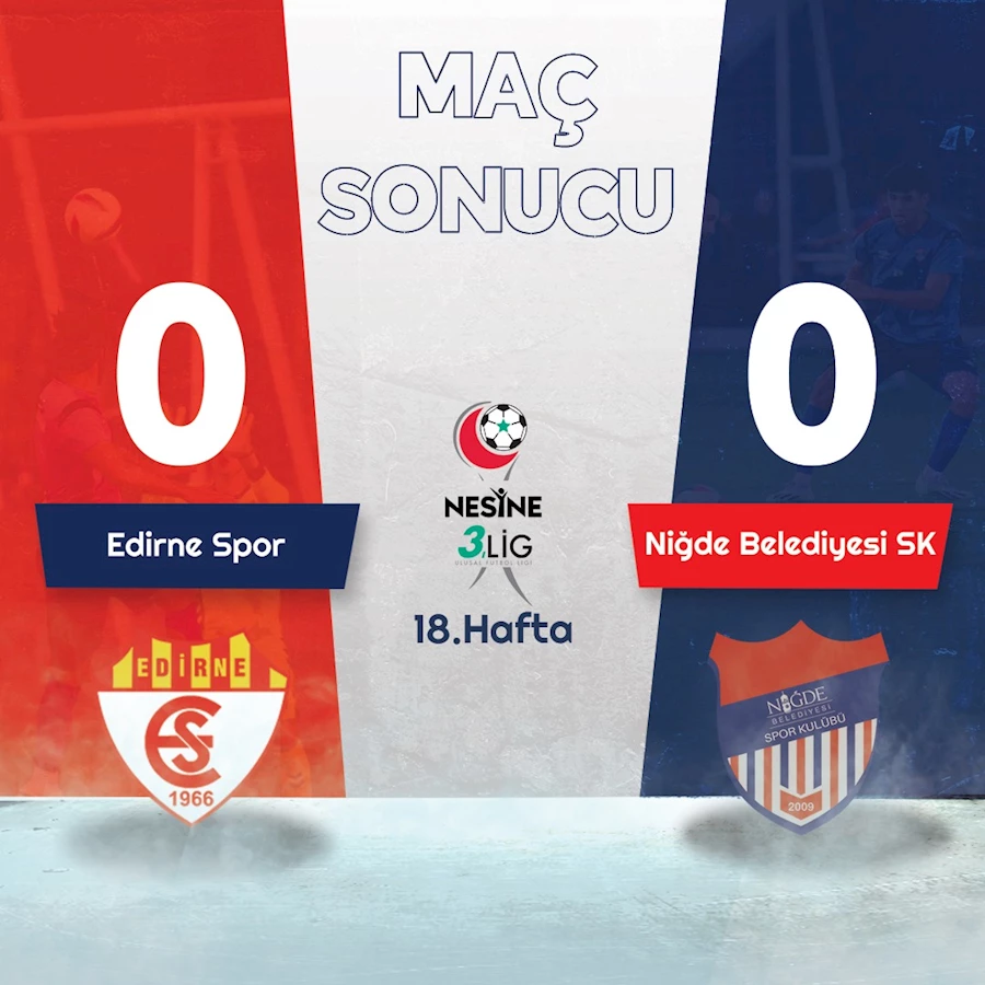 Niğde Belediyespor maç boyunca rakibine göre daha derli toplu bir futbol ortaya koydu. Karşılıklı ataklarla geçen maçta gol pozisyonlarının azlığı dikkat çekti. Yakalanan pozisyonlarda ise ileri uç elemanlarının son vuruşları etkili olmayınca maç başladığı gibi bitti. Maçın 78. dakikasında Edirnespor’dan Alperen Özşahin yaptığı faul sonrası ikinci sarı karttan kırmızı kart görerek takımını 10 kişi bıraktı.