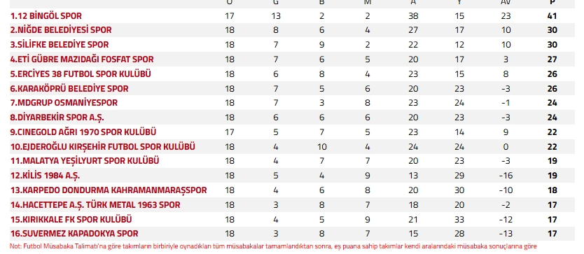Ligde 18 maç sonunda 30 puan toplayan Niğde Belediyespor, haftaya 2. sırada girdi. Zirve mücadelesi veren kırmızı-lacivertli ekip, bu kritik karşılaşmadan galibiyetle ayrılarak üst sıralardaki yerini korumayı hedefliyor. Konuk ekip Hacettepe A.Ş. Türk Metal 1963 Spor ise 18 maçta topladığı 17 puanla 14. sırada bulunuyor.