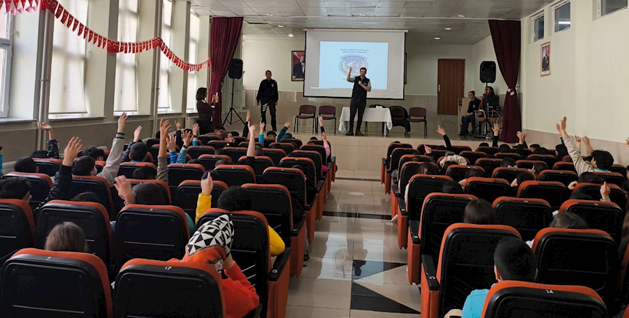 Öğrencilere akran zorbalığı, siber zorbalık, dolandırıcılık, güvenli internet kullanımı, 112 Acil Yardım Hattı ve önemli telefonların kullanımı konularında bilgi aktarıldı. Ayrıca, farkındalığı artırmak amacıyla broşürler dağıtıldı.