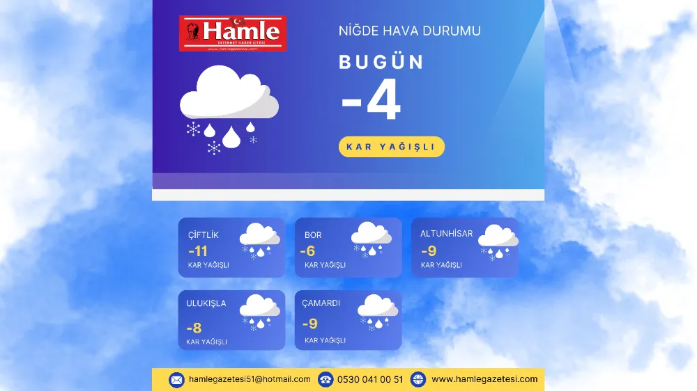 Niğde ve ilçelerinde etkili olan kar yağışı, hayatı olumsuz etkilemeye devam ediyor. Meteoroloji Genel Müdürlüğü’nden alınan bilgilere göre, bugün Niğde merkezde hava sıcaklığı -4°C olarak ölçülürken, ilçelerde sıcaklık daha da düştü. Çiftlik -11°C, Bor -6°C, Altunhisar -9°C, Ulukışla -8°C ve Çamardı -9°C olarak kaydedildi.