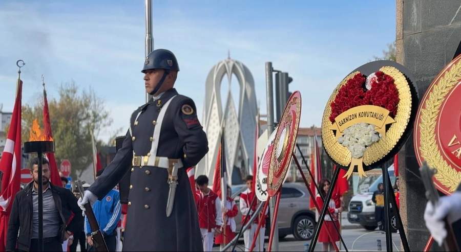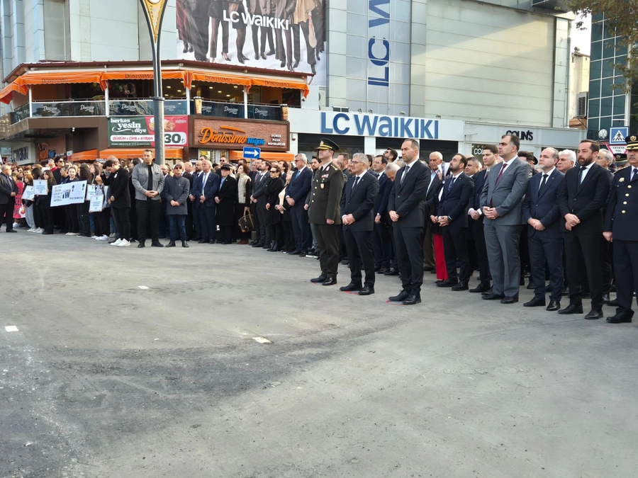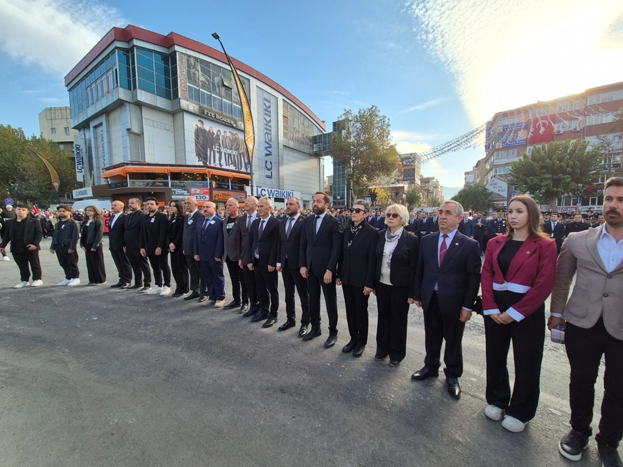 Atatürk Anıtı’na çelenklerin sunulmasıyla başlayan tören, saat 09.05’te çalan sirenlerle iki dakikalık saygı duruşuna dönüştü. O anlarda kentte hayat adeta durdu. Araçlar kenara çekildi, vatandaşlar bulundukları yerde Atatürk’e saygı duruşunda bulundu. Ardından İstiklal Marşı’nın hep bir ağızdan okunmasıyla meydan duygusal anlara sahne oldu.