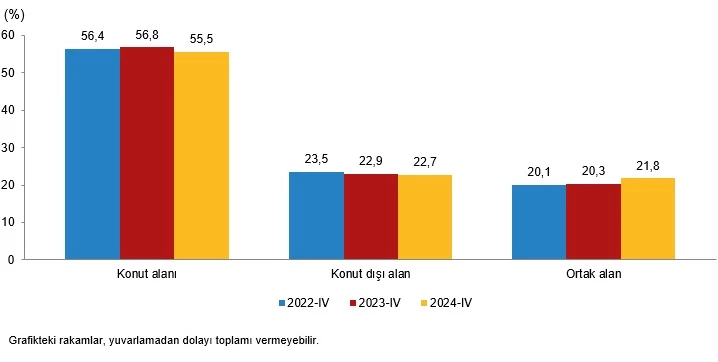 Yapı ruhsatına göre konut, konut dışı ve ortak alanların yüzölçüm payları, IV. Çeyrek, 2022-2024