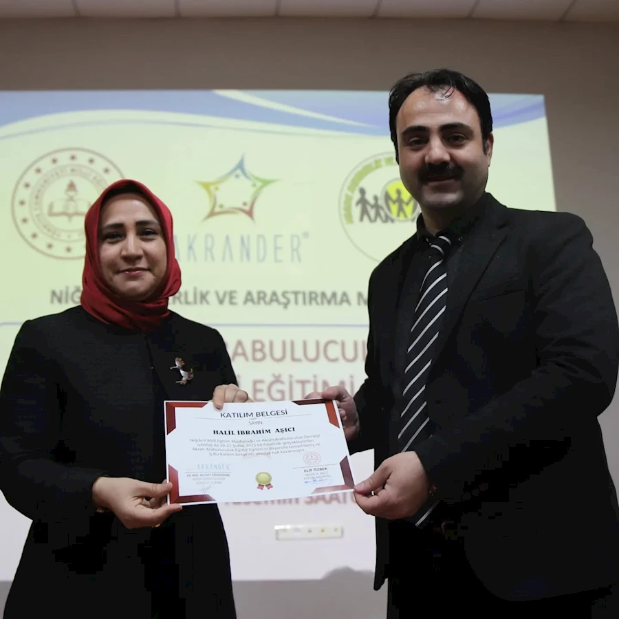 Eğitim sonunda İl Milli Eğitim Müdürü Elif Özbek, eğitim görevlilerine plaket, katılımcılara ise sertifikalarını takdim etti. Programın gerçekleşmesine katkı sunan Niğde Rehberlik ve Araştırma Merkezi Müdürlüğü, AKRANDER Başkanı Av. Arb. Nejdet Göğüsdere, Çukurova Üniversitesi Psikolojik Danışma ve Rehberlik Anabilim Dalı Öğretim Üyesi Prof. Dr. Meral Atıcı ve Samsun Atakum’da görevli Psikolojik Danışman Yasemin Saatçi'ye teşekkür edildi.