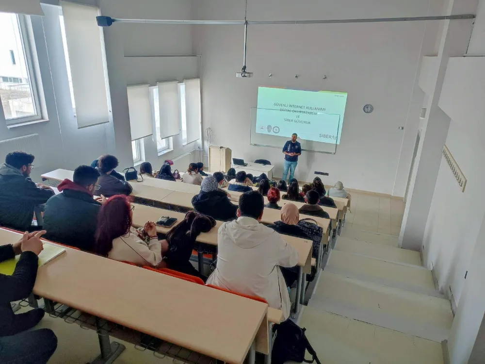 22 Aralık 2025 tarihinde düzenlenen seminerde; siber güvenlik, güçlü şifre kullanımı, güvenli internet, kişisel verilerin korunması, siber dolandırıcılık yöntemleri ve sosyal medyanın günlük yaşama etkileri ele alındı. Öğrencilerin dijital ortamlarda karşılaşabilecekleri riskler hakkında bilgilendirildiği programda, güvenli dijital alışkanlıkların önemi vurgulandı.
