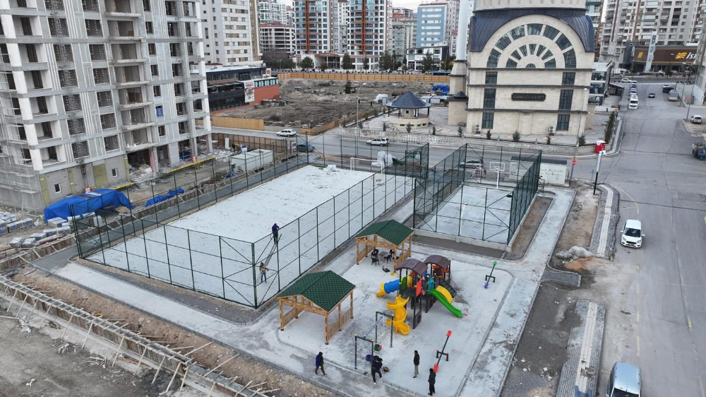 Saygı Sokak’ta yapımı sürdürülen yeni park ve spor alanı, bölge sakinlerine hem spor yapma hem de dinlenme imkânı sunacak.