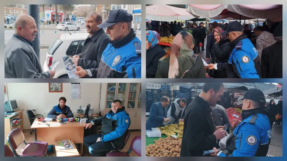 Toplumda güvensizlik kaygısının ve suç korkusunun azaltılması amacıyla yürütülen çalışma kapsamında, vatandaşların yoğun olarak bulunduğu semt pazarları ve caddelerde broşür dağıtımı yapıldı. Özellikle “İletişim Yoluyla Dolandırıcılık”, “Mal Varlığına Karşı İşlenen Suçlar” ve “Parada Sahtecilik” konularında uyarılarda bulunuldu.