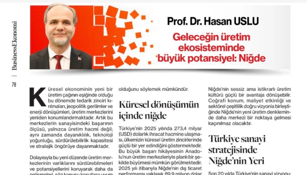 Niğde’nin Üretim Potansiyeline Dikkat Çeken Makale