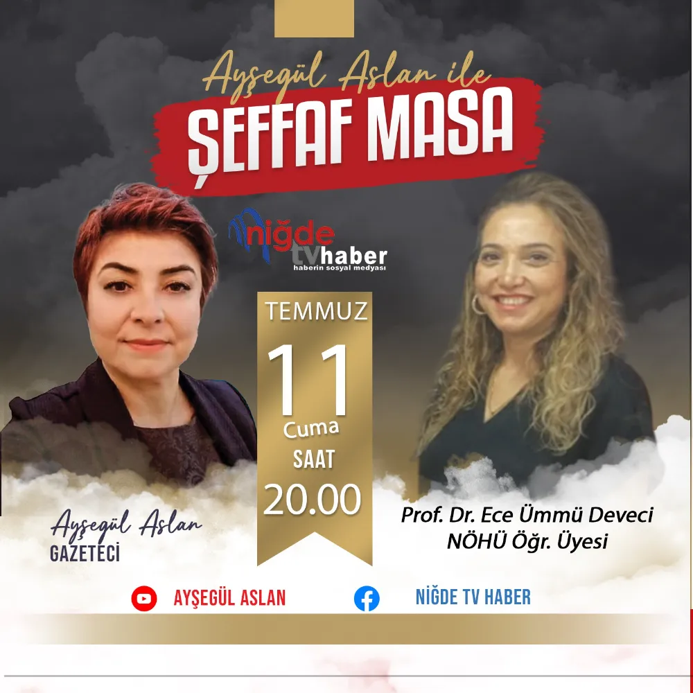 Bu özel yayın, 11 Temmuz Cuma (yarın) saat 20.00’de Niğde TV Facebook sayfası, Hamle Gazetesi resmi web sitesi ve Ayşegül Aslan ile Şeffaf Masa YouTube kanalı üzerinden canlı olarak izlenebilecek.