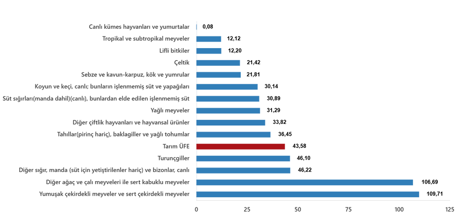 Tarım ürünleri üretici fiyat endeksi (Tarım-ÜFE) yıllık %43,58 arttı, aylık %8,46 arttı