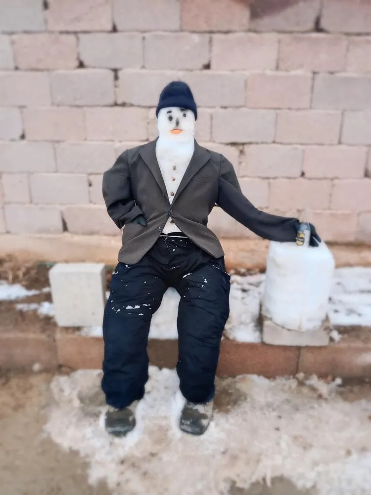 Köy sakinlerinin eğlence amacıyla yaptığı bu sıra dışı kardan adam, sosyal medyada da büyük ilgi gördü. Yanında bir plastik bidonla oturur şekilde tasarlanan figür, hem eğlenceli hem de sanatsal bir çalışma olarak değerlendiriliyor.