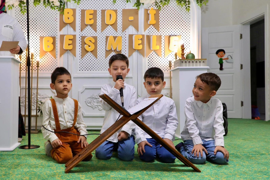 Etkinlikte minik öğrenciler, Kur’an-ı Kerim okumaya başlamanın heyecanını yaşarken, ilahiler, şiirler ve dualarla renkli anlar yaşandı.