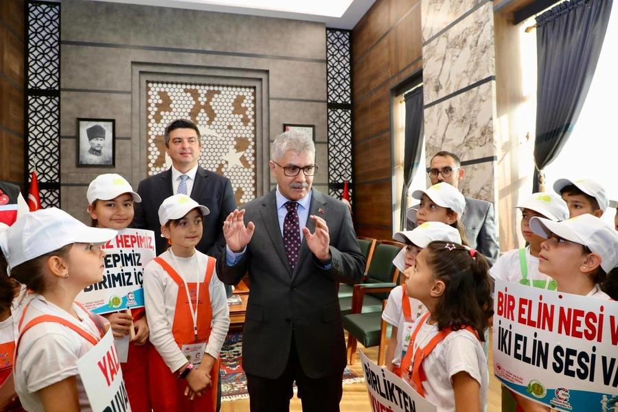 Tarım ve Orman Bakanlığı tarafından bu yıl “Uluslararası Kooperatifler Yılı” temasıyla düzenlenen Lider Çocuk Tarım Kampı 2025 programına katılan Dumlupınar İlkokulu öğrencileri, İl Tarım ve Orman Müdürü Furkan Mete eşliğinde Niğde Valisi Cahit Çelik’i makamında ziyaret etti.