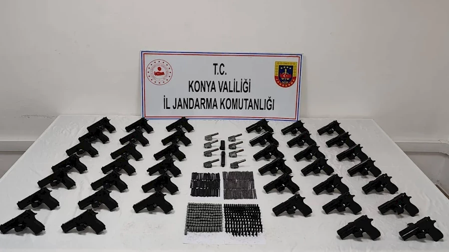 Olay Konya'nın Beyşehir ilçesinde yaşandı. M.Ö'nün kullandığı araçtan yola atılan çuvalda 40 ruhsatsız tabanca ve tabanca malzemeleri ele geçirildi.