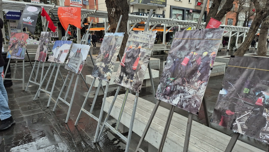 Sergide, 6 Şubat depremlerinde yaşanan yıkımı, arama kurtarma çalışmalarını ve dayanışma sürecini yansıtan fotoğraflar yer aldı. Katılımcılar, fotoğraflar üzerinden deprem sürecine ilişkin değerlendirmelerde bulundu.