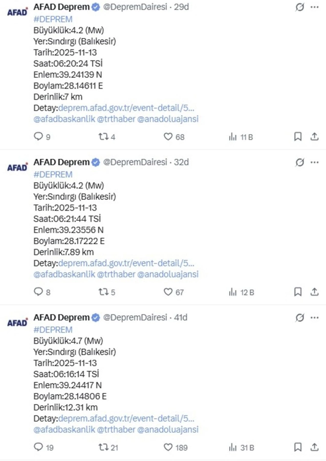 Bölgede son aylarda yaşanan deprem yoğunluğu dikkat çekerken, uzmanlar Sındırgı çevresindeki hareketliliğin bir süredir sürdüğünü belirtiyor. Depremlerin ardından herhangi bir olumsuzluk bildirilmezken, vatandaşların tedirginliği ise devam ediyor.