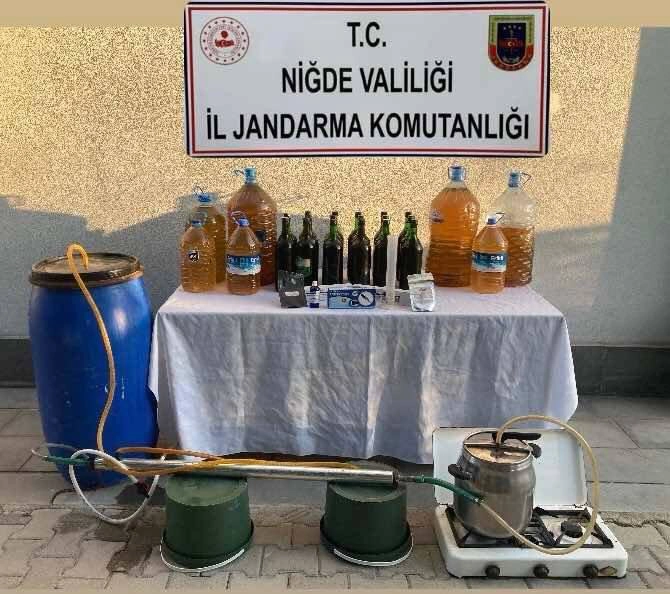 Bor ilçesi Bahçeli kasabasında gerçekleştirilen operasyonda, bir şüpheliye ait ikamette yapılan aramalarda 120 litre el yapımı şarap, 75 litre el yapımı rakı, rakı yapımında kullanılan düzenek, ölçüm aleti, iki adet alkolmetre ve hidrometre ile 100 gram anason yağı ele geçirildi.