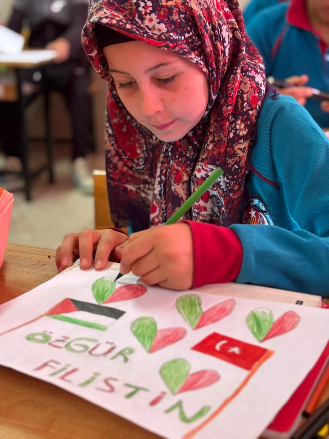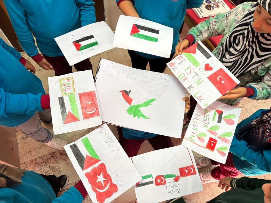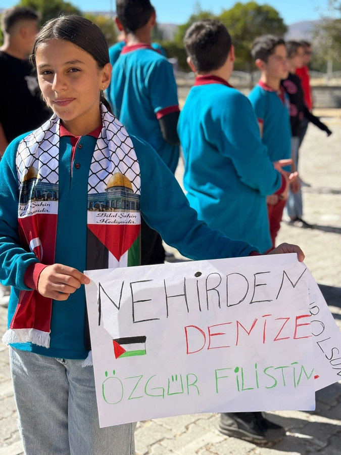 Öğretmenlerin rehberliğinde hazırlanan etkinlik, katılımcılardan büyük beğeni topladı. Öğrenciler, programın sonunda ellerinde Filistin bayraklarıyla “özgür Filistin” sloganları atarak barış çağrısında bulundu.