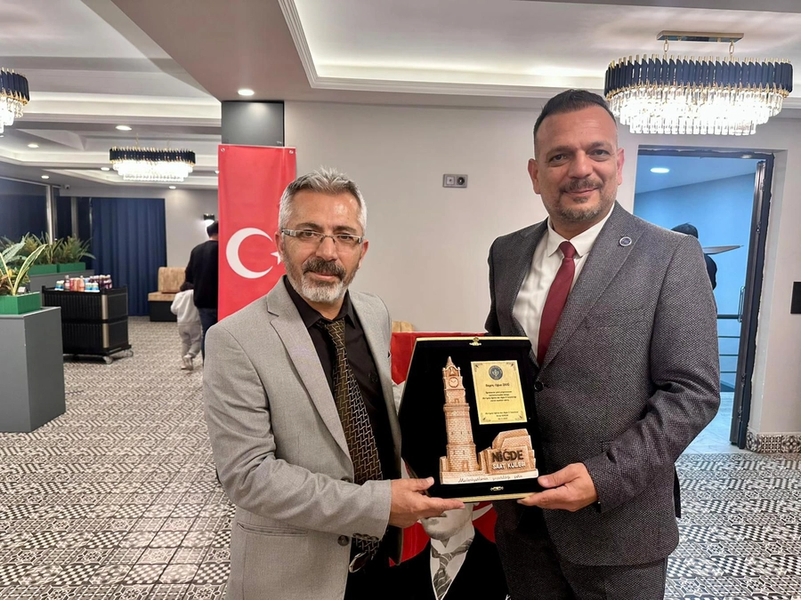 Konuşmaların ardından günün anısına, İl Temsilcisi Recep Gençer tarafından Genel Başkan Yardımcısı Oğuz İduğ’a Niğde temalı plaket takdim edildi.
