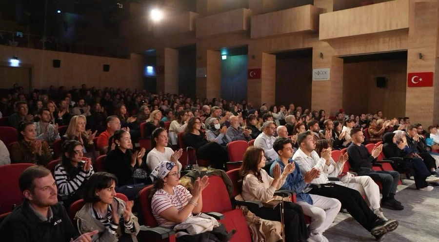 Niğde Belediyesi tarafından düzenlenen etkinlikte salonu dolduran izleyiciler, performans sonunda oyuncuları uzun süre alkışladı.