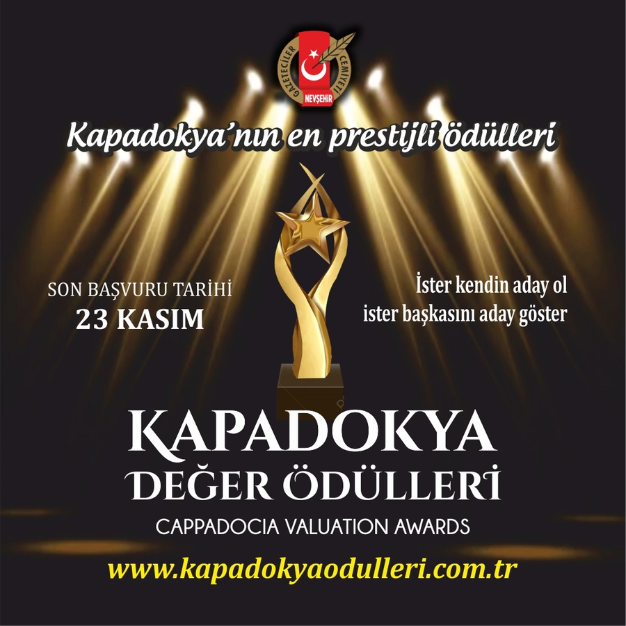 Başvurular 23 Kasım 2025 saat 23.59’a kadar www.kapadokyaodulleri.com.tr adresi üzerinden yapılabilecek. Ödüller, düzenlenecek törenle sahiplerine takdim edilecek.