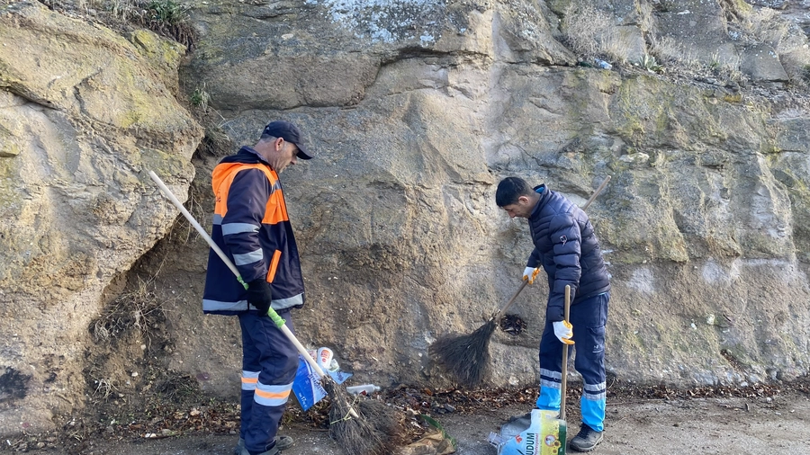 Bölgedeki kirlilik üzerine ekipler çöp toplama ve süpürme çalışması yaptı.