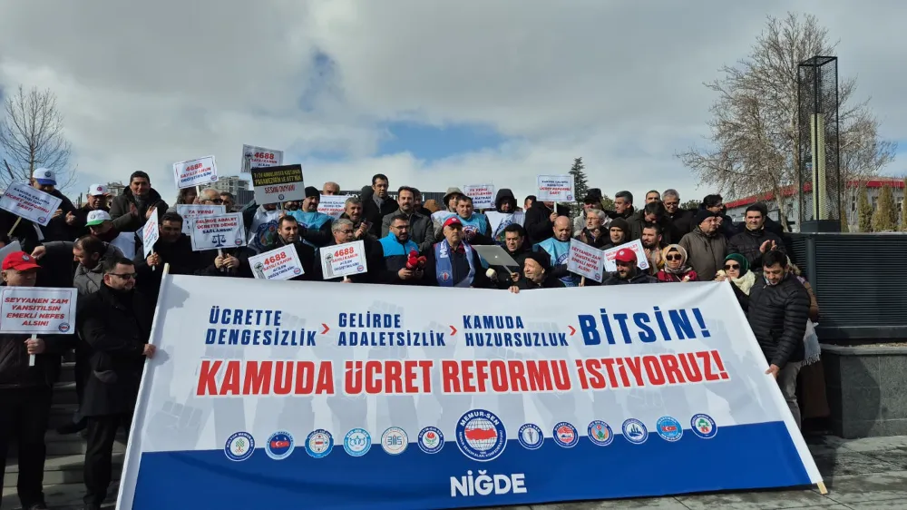 Memur-Sen Niğde İl Temsilciliği, Türkiye genelinde eş zamanlı yapılan basın açıklamaları kapsamında Ömer Halisdemir Meydanı’nda bir araya gelerek kamu çalışanlarının yaşadığı gelir kaybına ve ücret adaletsizliğine dikkat çekti. İl Temsilcisi Hasan Orhan tarafından okunan açıklamada, mevcut toplu sözleşme düzeninin sürdürülebilir olmadığı vurgulandı.
