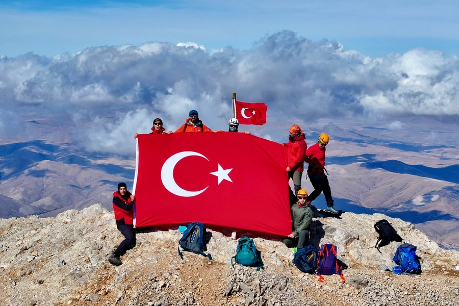 Dağcılar zirvede Türk bayrağını dalgalandırarak Cumhuriyet’in 102. yılını kutladı. Ay yıldızlı bayrak eşliğinde saygı duruşunda bulunulup İstiklal Marşı okundu. Zirvede yaşanan duygusal anlar objektiflere yansıdı.