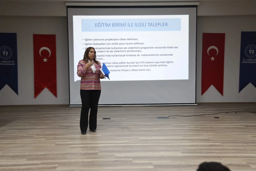 Toplantıda; gençlik merkezleri, spor tesisleri, eğitim birimi, tesis işletme süreçleri ve sahadaki çalışmalar hakkında sunumlar yapılarak birimlerin ihtiyaçları değerlendirildi. Kurumsal koordinasyonun güçlendirilmesi, verimliliğin artırılması ve gençlere yönelik yapılacak yeni çalışmalar konusunda önemli kararlar alındı.