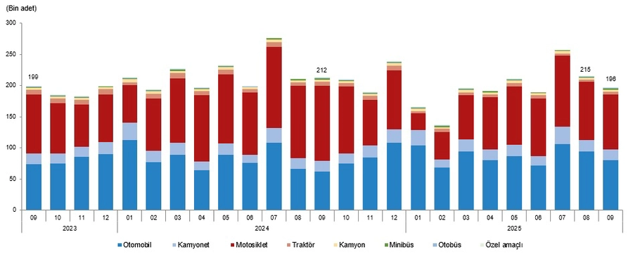 Trafiğe kaydı yapılan taşıt sayısı, Eylül 2023-Eylül 2025