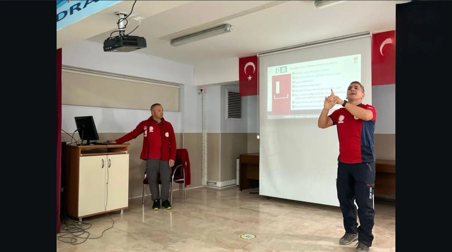 Tatbikatın ardından MEB AKUB ekibinde görevli öğretmenler tarafından öğrencilere afet bilinci ve acil durumlarda doğru davranış biçimleri hakkında bilgilendirme yapıldı.