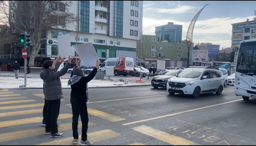 Niğde’de ortaokul öğrencileri, Filistin’de yaşananlara dikkat çekmek amacıyla trafikte barışçıl bir farkındalık eylemi gerçekleştirdi.