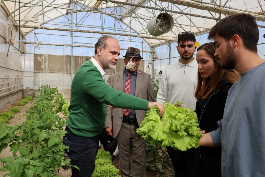 Gerçekleştirilen etkinlikte öğrencilerle sohbet eden Rektör Prof. Dr. Hasan Uslu, üretim süreci hakkında detaylı bilgiler aldı ve yürütülen tarımsal araştırma ile uygulama projelerini yerinde inceledi.