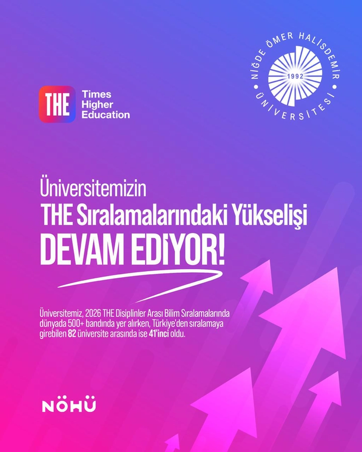 Niğde Ömer Halisdemir Üniversitesi (NÖHÜ), dünyanın en saygın yükseköğretim derecelendirme kuruluşlarından Times Higher Education (THE) tarafından açıklanan 2026 Disiplinlerarası Bilim Sıralamaları’nda önemli bir başarıya imza attı.