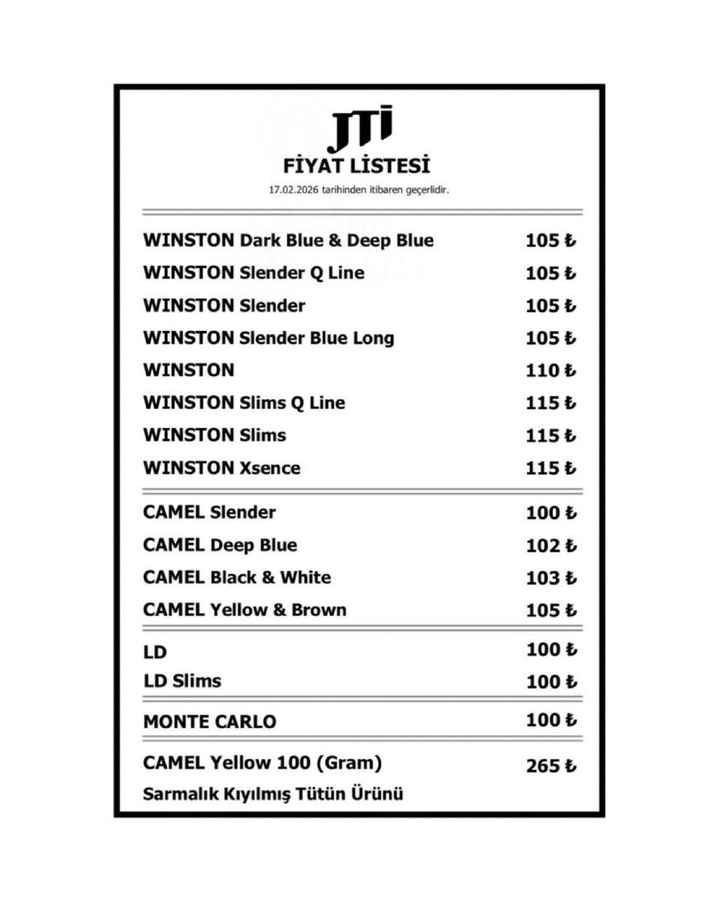 Yeni fiyat listesinin 17 Şubat 2026 itibarıyla geçerli olduğu bildirildi. Satış noktalarında fiyatların belirtilen tutarlar üzerinden uygulanacağı öğrenildi.