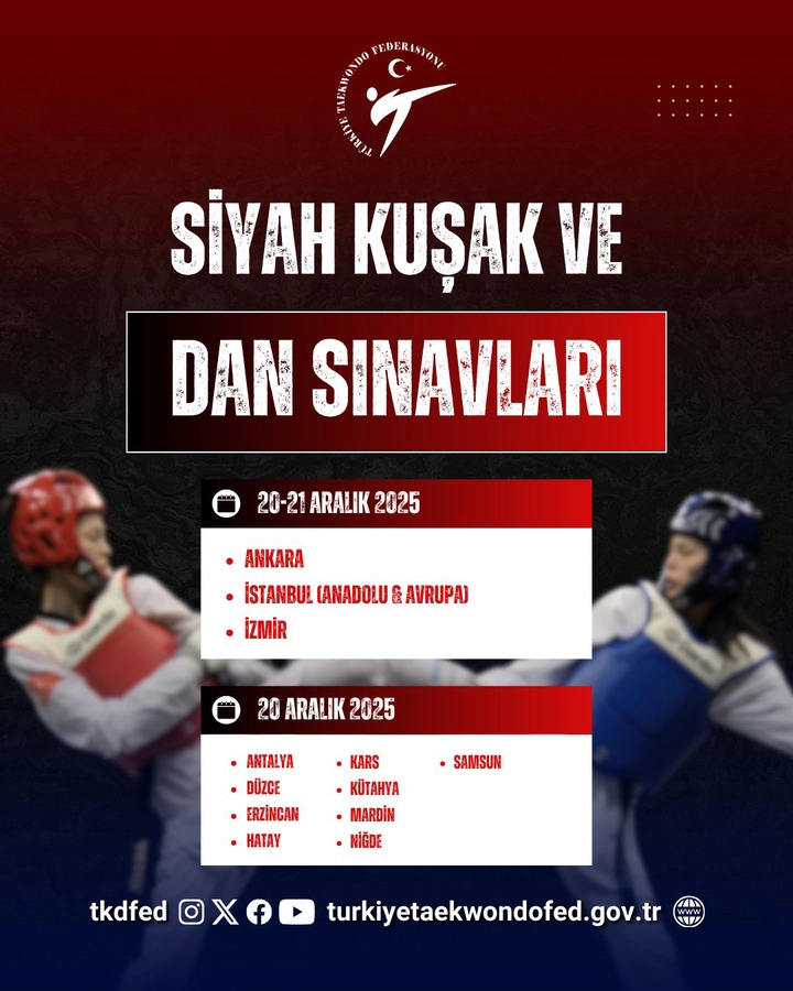 Türkiye Taekwondo Federasyonu tarafından düzenlenen Siyah Kuşak ve Dan Sınavları, 20 Aralık 2025 tarihinde Niğde Merkez Spor Salonu’nda yapılacak. Taekwondo camiasının büyük önem verdiği sınavlara bu yıl Niğde’nin ev sahipliği yapacak olması şehirde heyecan oluşturdu.