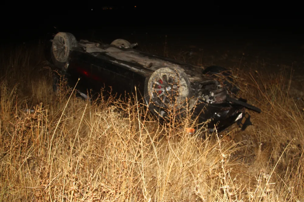 Yoldan çıkıp tarlaya devrilerek ters dönen araç içerisinde yolcu olarak bulunan Ali K. ile Murat Ç. yaralanırken, araç sürücüsü kazayı yara almadan atlattı.