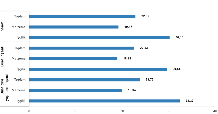 Bina inşaatı maliyet endeksi, bir önceki aya göre %1,15 arttı, bir önceki yılın aynı ayına göre %22,53 arttı. Bir önceki aya göre malzeme endeksi %1,67 arttı, işçilik endeksi %0,23 arttı. Ayrıca bir önceki yılın aynı ayına göre malzeme endeksi %18,92 arttı, işçilik endeksi %29,54 arttı.